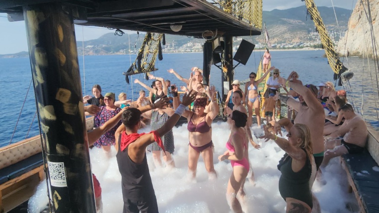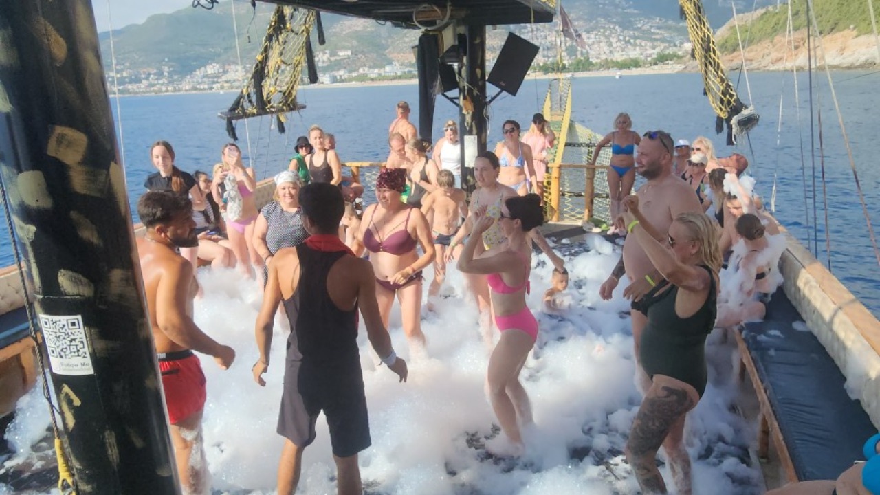 На борту — весёлая пенная дискотека! Отличная музыка, пена и море веселья.