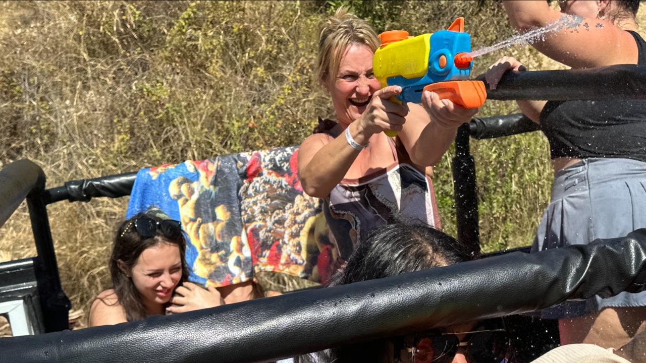 Проезжаем через ароматные цитрусовые плантации. По пути — весёлая водная битва прямо в дороге! Отличное настроение гарантировано!