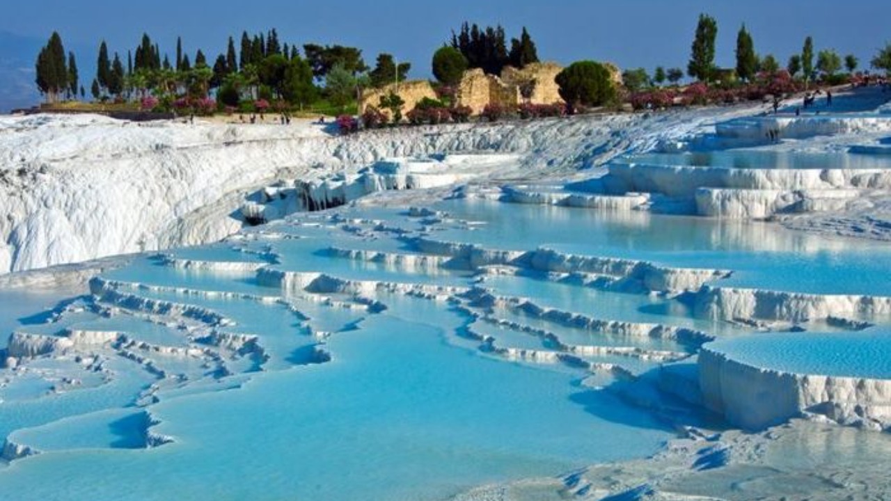 Главная часть экскурсии — белоснежные террасы Памуккале. Вы увидите природные бассейны, образованные минеральной водой, прогуляетесь по фантастическим ландшафтам и почувствуете магию этого древнего места.