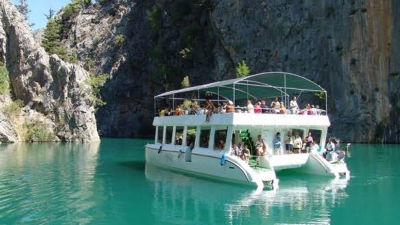 Экскурсия по Зеленому каньону пройдет на яхте – катамаране! Здесь вы найдете все, что нужно для комфортного отдыха: две уютные палубы, оборудованные зоны отдыха, бар, а также раздевалки и душевые.