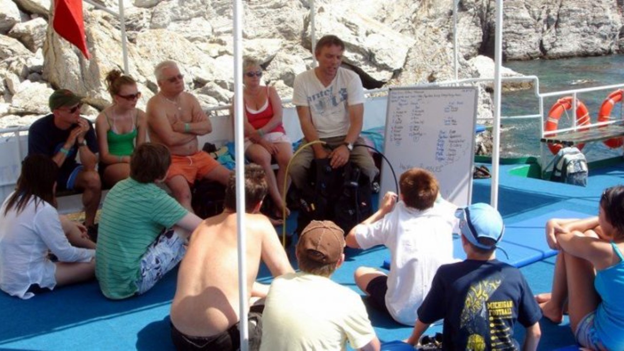 Во время обучающих занятий вас познакомят с оборудованием для дайвинга, а также расскажут о правилах поведения и общения под водой на глубине около 5-6 метров.