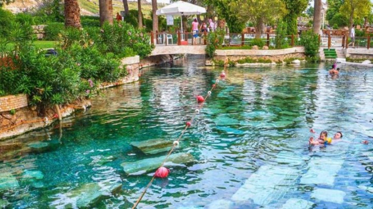 Своей народной славой бассейн Клеопатры не уступает самим травертинам. Он похож на античный джакузи с колоннами и барельефами. Вода в бассейне минеральная и состав ее очень насыщен полезными элементами.
