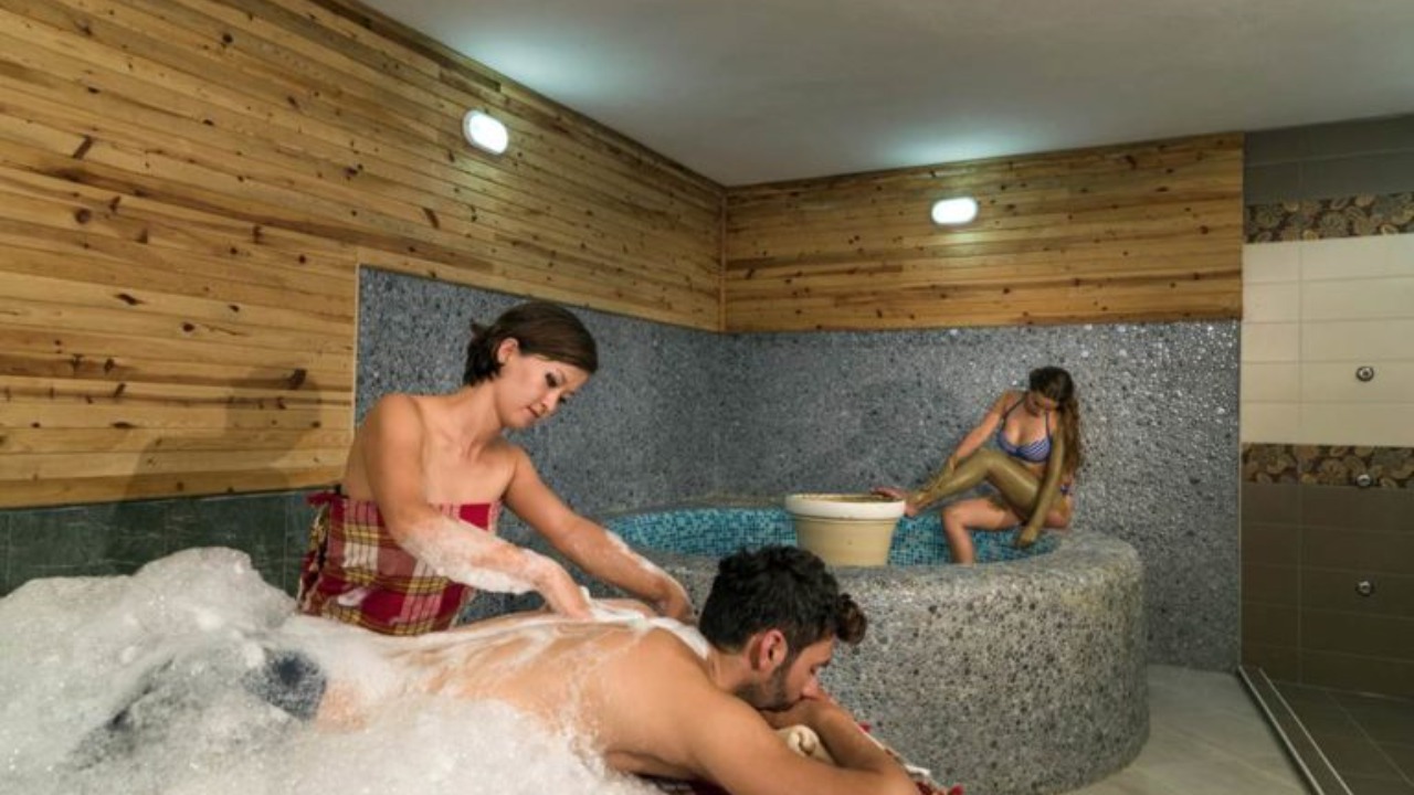 Комфортабельный трансфер заберет вас из отеля и доставит в турецкую баню. Процедура релакса начнется для вас с посещения сауны. Здесь ваше тело расслабится, согреется, поры откроются, что позволит вам в дальнейшем отлично очистить кожу.