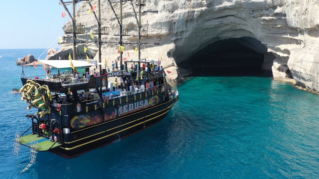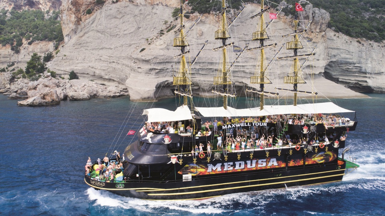 Приглашаем вас отправиться в увлекательное морское путешествие на борту эффектного тематического корабля Medusa, стилизованного под пиратскую галеру! Этот день подарит море впечатлений, бирюзовые воды Средиземного моря, живописные бухты, древние руины и весёлую атмосферу. Экскурсия начинается с трансфера из отеля в Анталии в порт Кемера, где вас уже ждёт наш комфортабельный и яркий корабль.