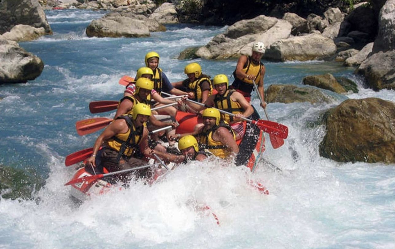 Следом начинается вторая часть программы — рафтинг по горной реке Кёпрючай. Под руководством опытных инструкторов вы пройдёте маршрут с порогами и спокойными участками. Всё снаряжение — шлемы, спасательные жилеты, весла — предоставляется.