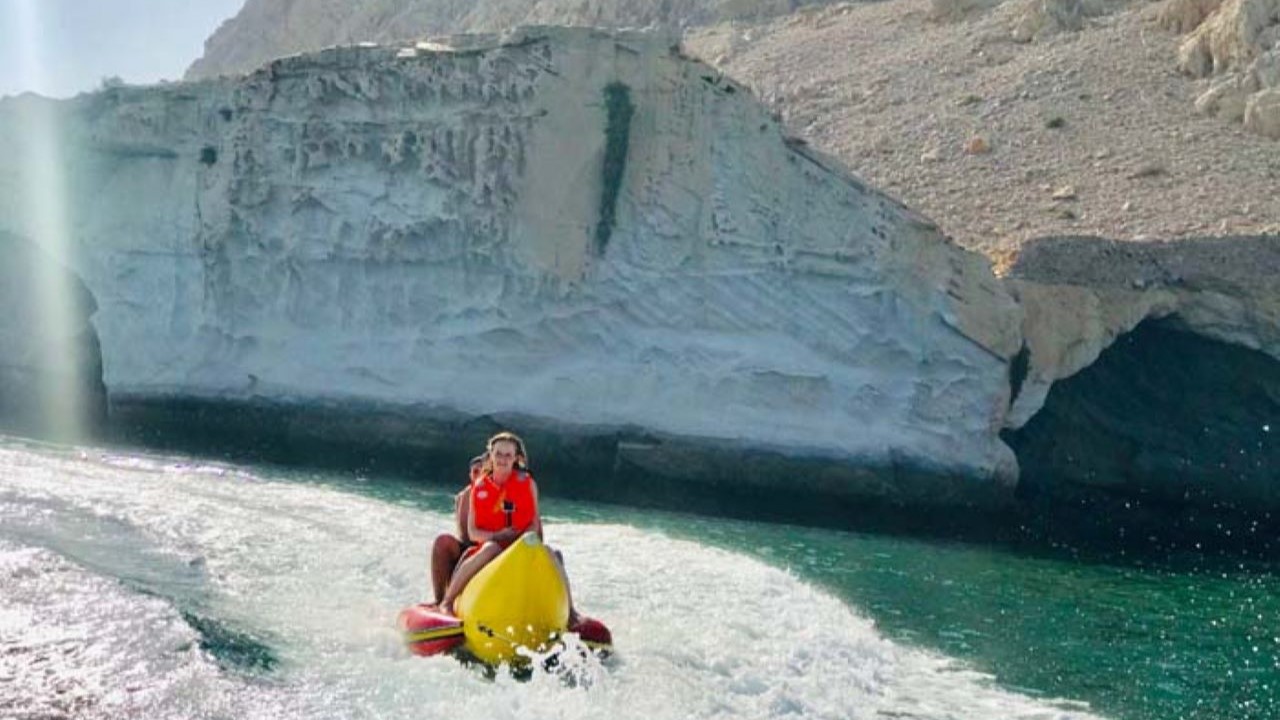 Вас ждет увлекательное путешествие на традиционной лодке доу, вдали от шумных мегаполисов и городской суеты. Наслаждайтесь захватывающими видами скалистых гор, чистым воздухом и безмятежностью Оманского залива.