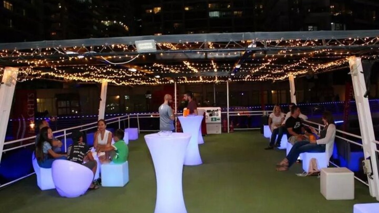 Верхняя палуба — открытая зона с панорамным обзором, удобными местами для отдыха и атмосферной подсветкой.