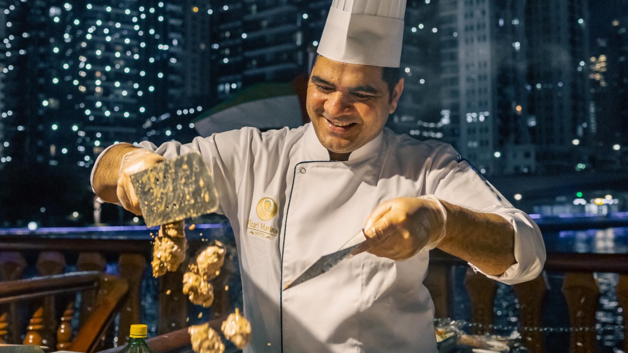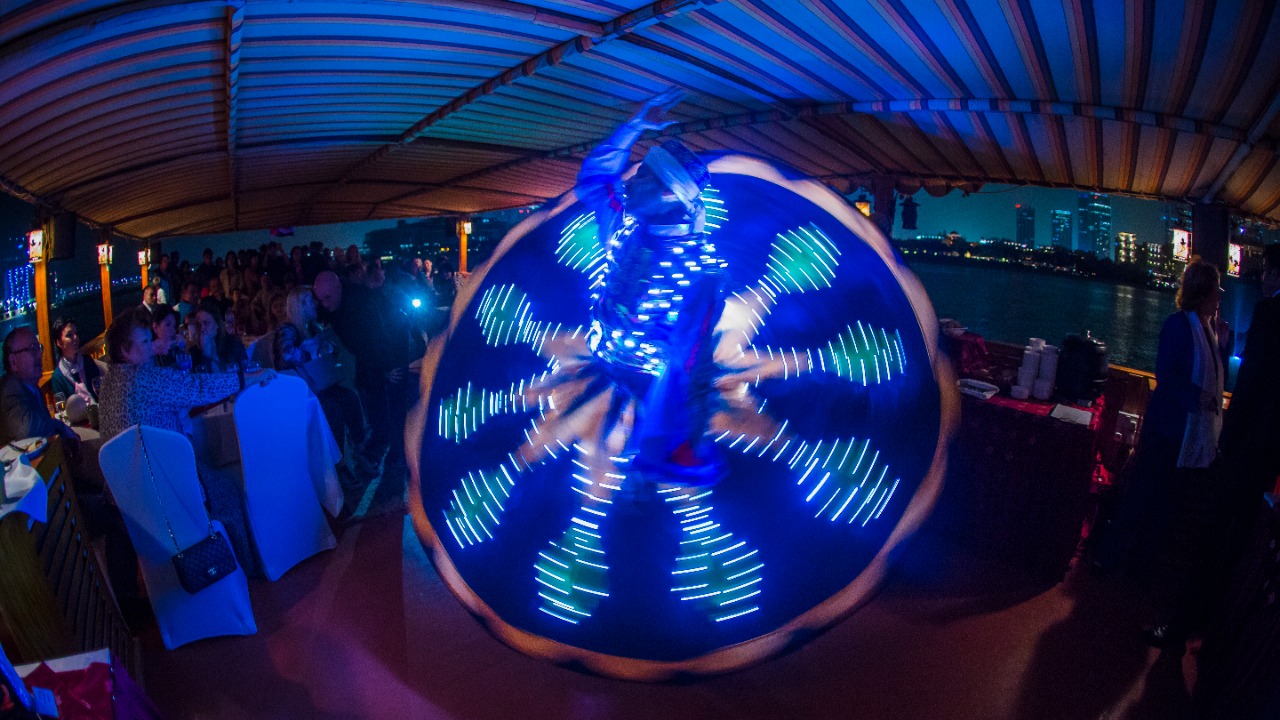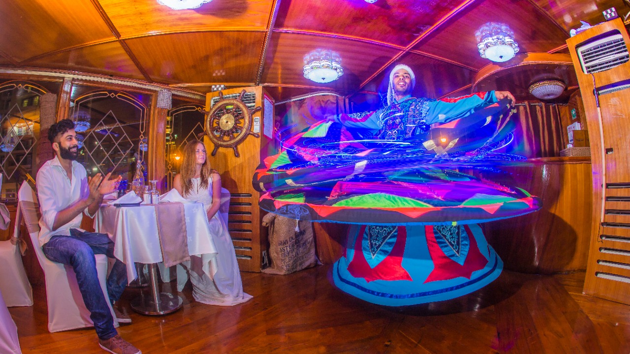 На борту вас ждет ужин по системе "шведский стол" с блюдами арабской и международной кухни, включая гриль-станцию с поваром, а также безалкогольные напитки. Для полного погружения в атмосферу Дубая в программе вечернего круиза — традиционный арабский танец Танура, который сделает ваш вечер еще ярче и колоритнее.