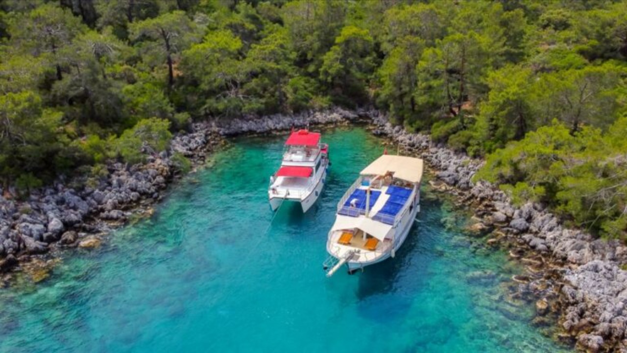 Остановка в бухте “Аквариум” известна своей захватывающей красотой и является одним из самых привлекательных туристических мест на юго-западном побережье Турции. Ее кристально чистые воды и обрамляющие ее живописные скалы создают впечатляющую картину, которая оставляет очень теплые впечатления у посетителей. А название говорит само за себя. Вода настолько прозрачна, что за рыбками можно наблюдать, как в аквариуме.