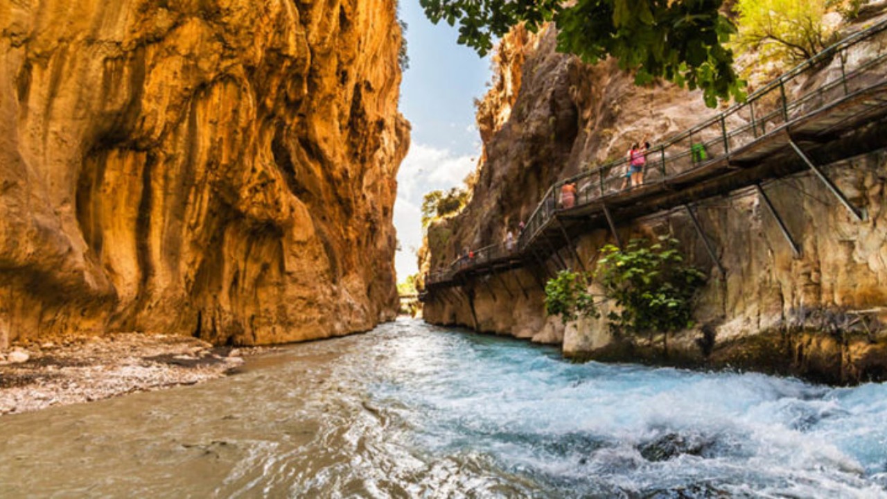 Удивительный каньон, расположенный недалеко от города Фетхие радует своей красотой посетителей. Каньон был обнаружен совершенно случайно местным жителем, который искал подходящий водоем для разведения форели. Со временем этому чуду природы государством был присвоен статус Национального парка. Вы увидите каньон в его первозданном виде. Внутри каньона Саклыкент вы сможете прогуляться по удобным деревянным специально оборудованным мостикам. В летний жаркий день особенно приятно чувствовать прохладу от горной реки, протекающей по дну каньона.