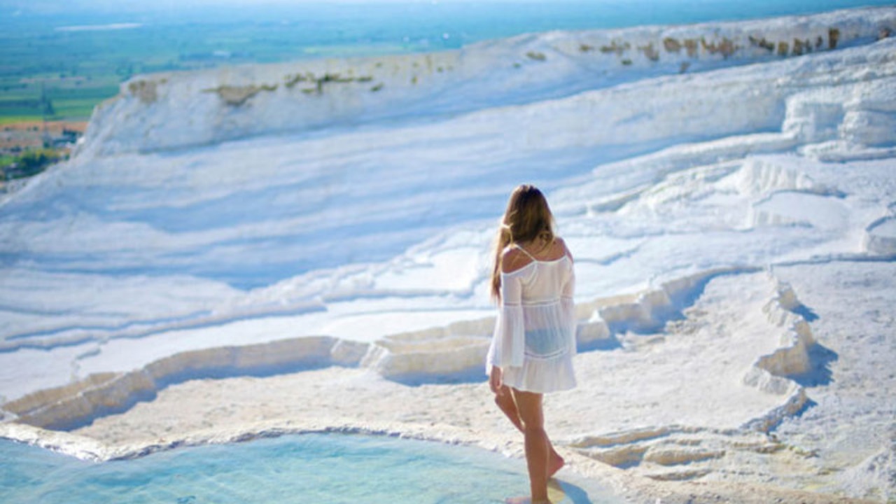 После завтрака уже Вас будет ждать встреча с белоснежными травертинами. Почему травертины белые? На самом деле, причиной всему известковые соли, которые издалека так напоминают привычный нам снег.