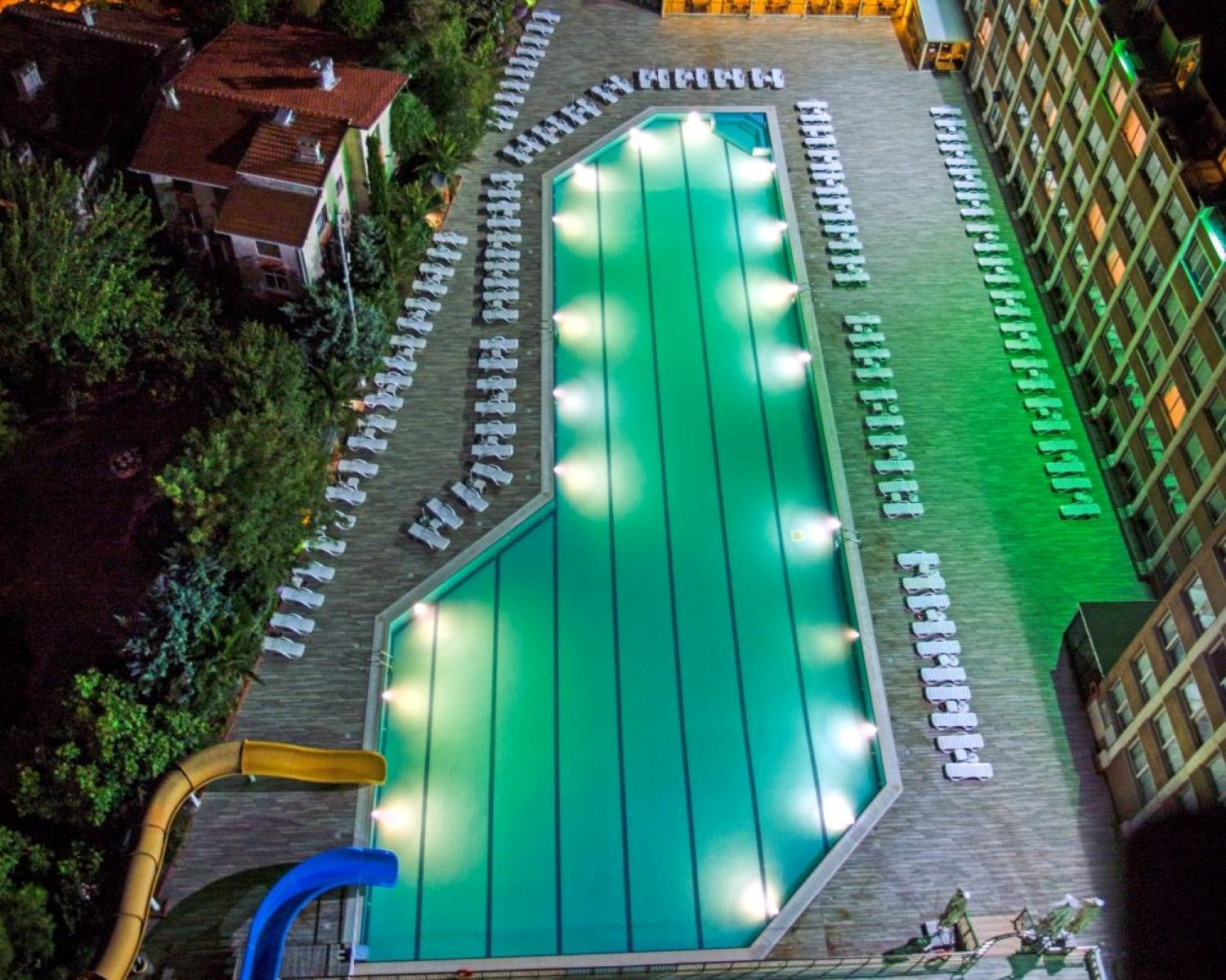 Это идеальное место как для семей с детьми, так и для отдыха в компании друзей или вдвоём. На территории отеля вы найдёте два просторных открытых бассейна с водными горками, крытый бассейн, фитнес-центр, СПА, сауну и хамам. Здесь предусмотрены все условия для полноценного отдыха.