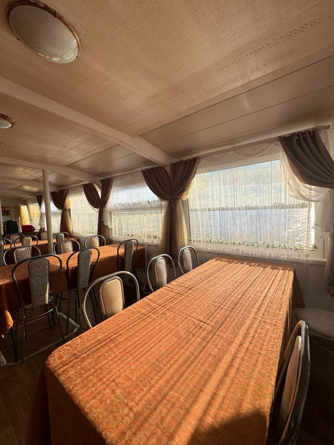 На борту работает бар, в котором можно купить прохладительные и горячие напитки, свежую татарскую выпечку