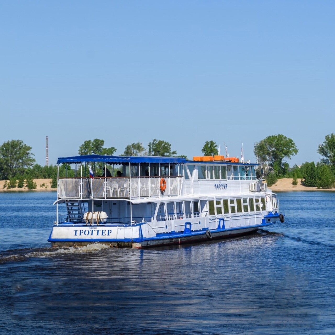 Приглашаем вас прокатиться на комфортабельном двухпалубном теплоходе «Троттер». Вы увидите водонапорную башню, Храм всех религий, сёла Верхний Услон и Печищи. Прогулка пройдёт под аккомпанемент приятной музыки и рассказы аудиогида. На борту работает бар с напитками и вкусной национальной выпечкой — отличное дополнение к речному отдыху.