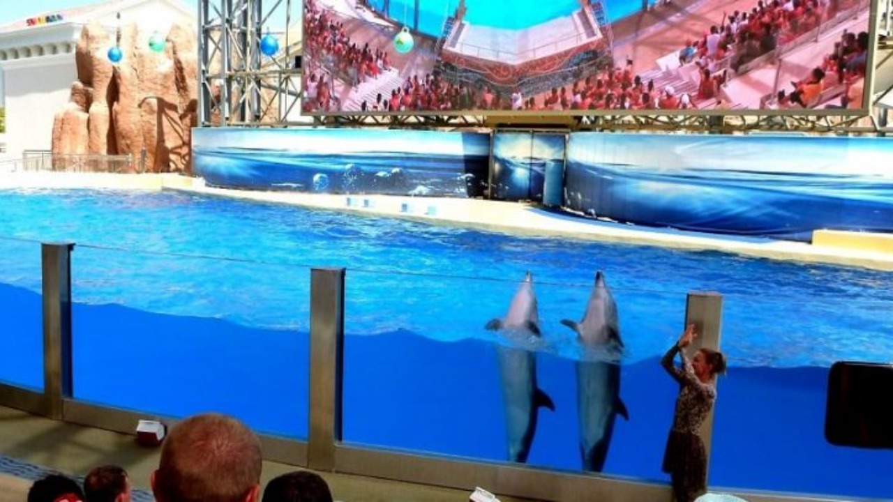 Представление длится около часа. Особенно зрелищным и ярким его делает стеклянная передняя часть бассейна, которая открывает потрясающий вид на дельфинов, плавающих под водой.