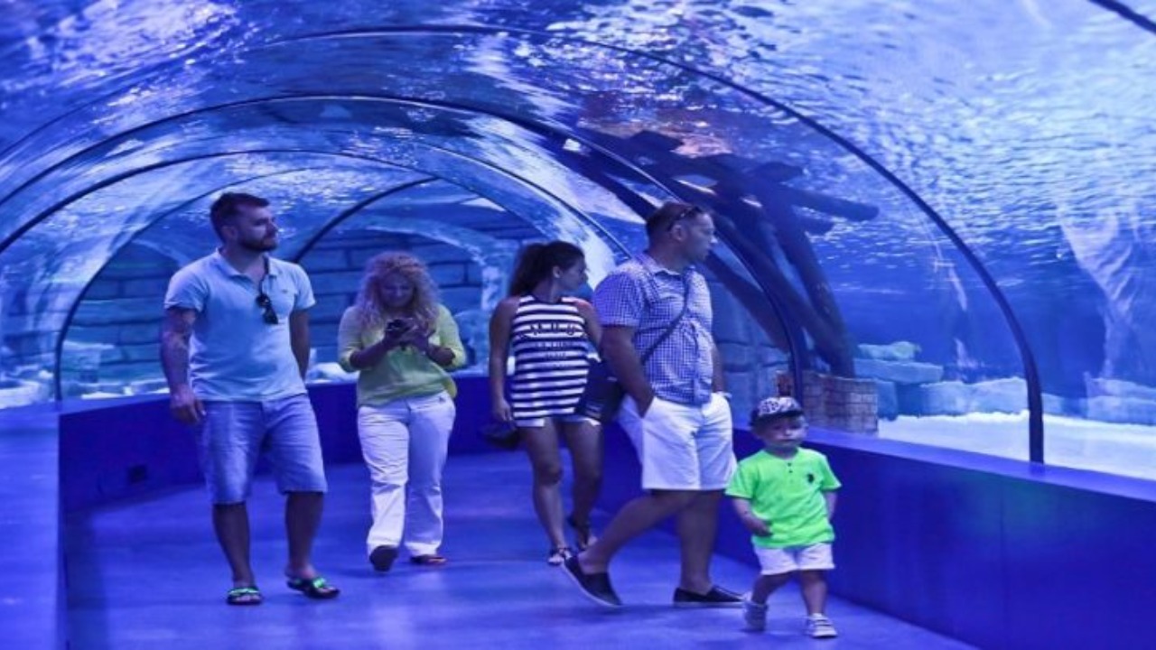 Анталийский аквариум занимает площадь в 15.000 м2. В самих резервуарах проживают более 10.000 представителей подводного мира. Туннельный аквариум, который является самым большим в мире, протянулся на 131 метр, и условно делится на 3 зоны: