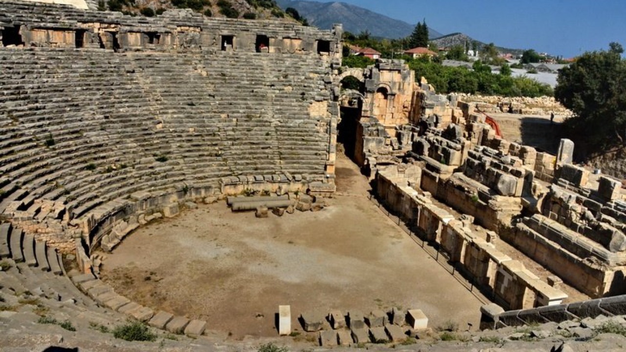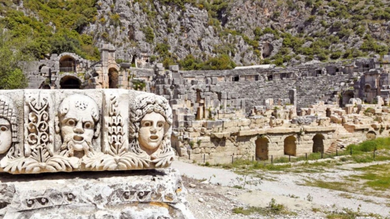 Первая остановка — древняя Мира, когда-то столица Ликии. Здесь сохранился большой греко-римский амфитеатр, где в древности проходили выступления и гладиаторские бои. Прямо над ним — знаменитые ликийские гробницы, вырезанные высоко в скале. Это один из самых ярких символов региона.