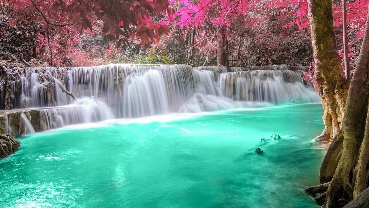 • Фото у водопада на фоне зелени