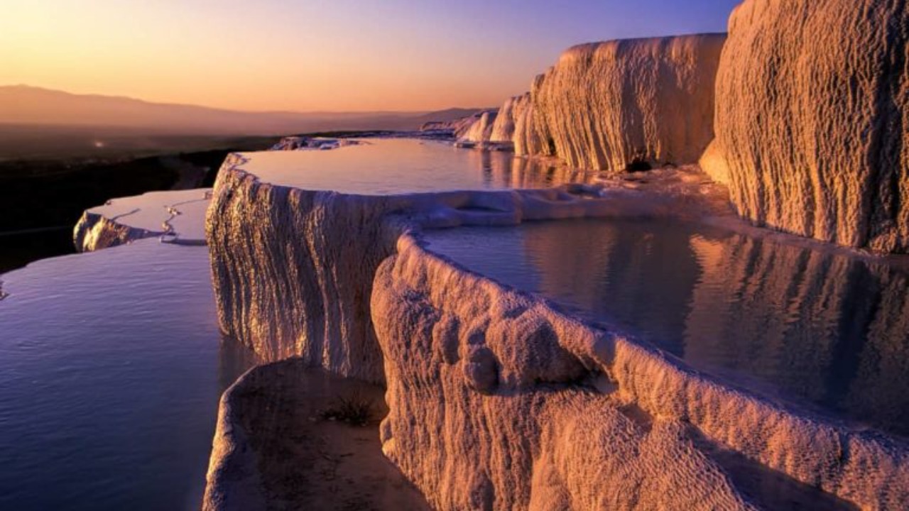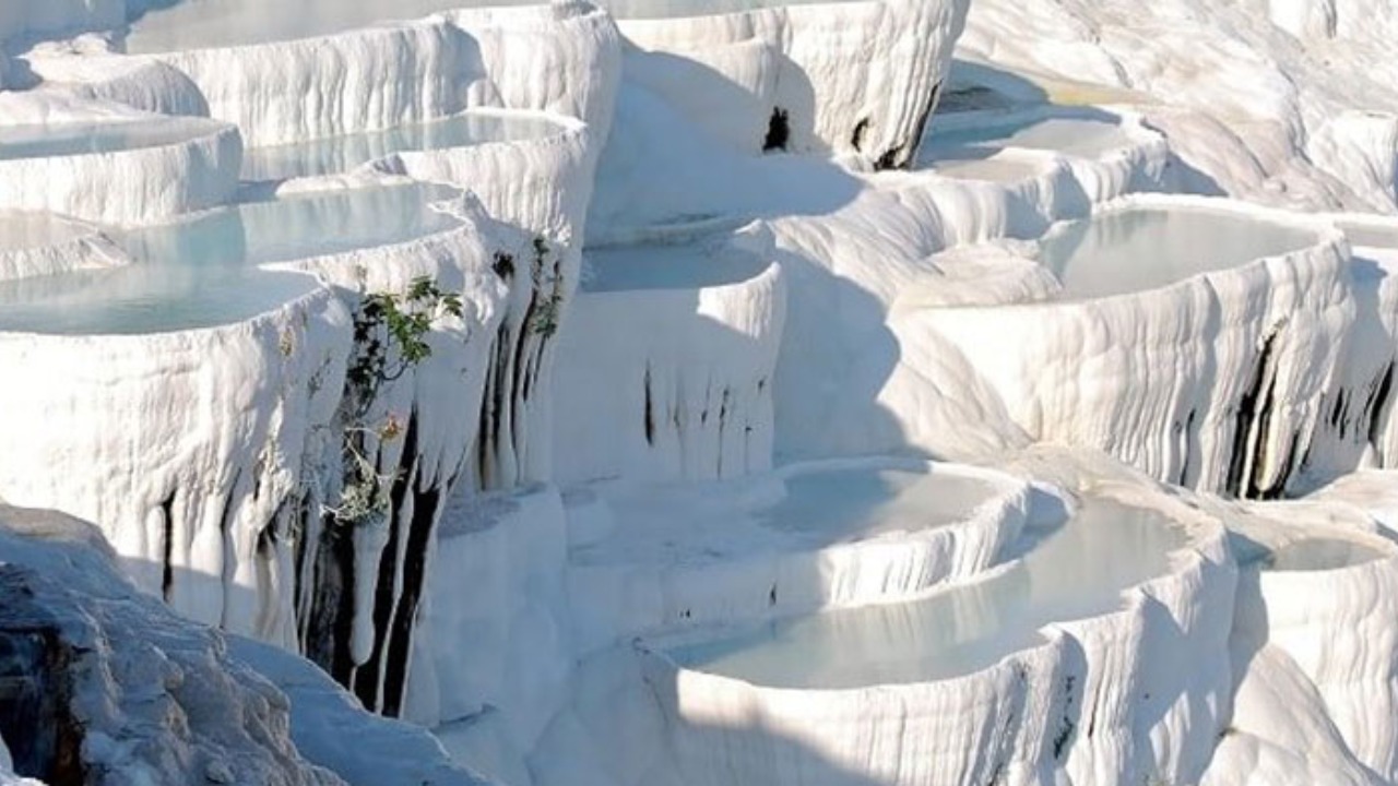 Памуккале – это комплекс из 17 геотермальных источников, температура воды которых от 36 до 100 градусов. Этот уникальный объект внесён в Список Всемирного Наследия ЮНЕСКО. С древних времён людям были известны лечебные свойства термальной воды Памуккале. Возле термальных источников во втором веке до нашей эры был основан город Иераполис.