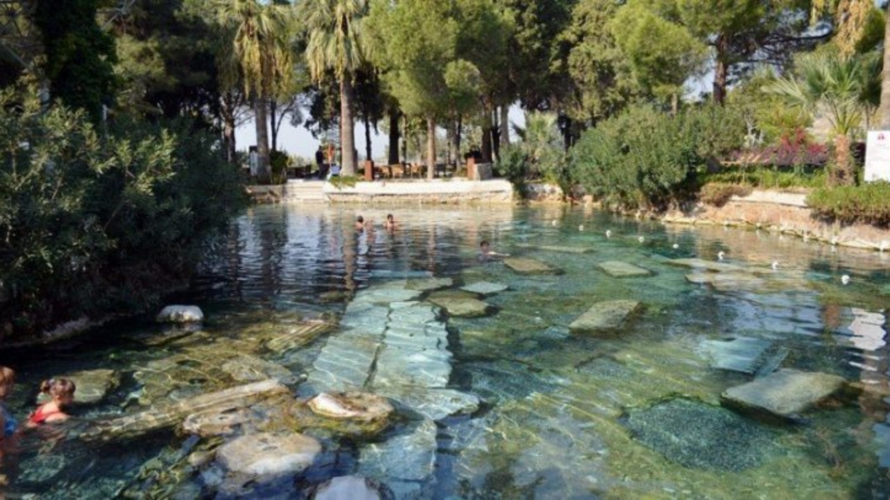 По легенде, сама египетская царица Клеопатра здесь принимала омолаживающие ванны. Бассейн Клеопатры-самый большой термальный источник на территории Памуккале. Вода в нем тёплая и газированная, что подарит вам очень необычные ощущения при плавании. В составе воды содержится практически вся таблица Менделеева. После погружения в бассейн Клеопатры вы почувствуете себя на много лет моложе, почувствуете прилив энергии и бодрости.