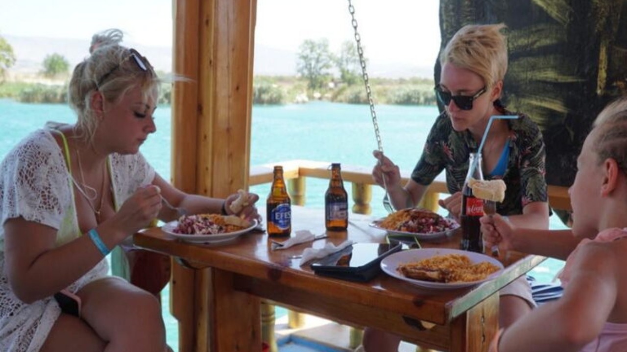 Экскурсия включает обеденный перерыв, который сервируется на борту корабля. Обед представляет раздачу порционных блюд: салат, макароны, курица или рыба.
