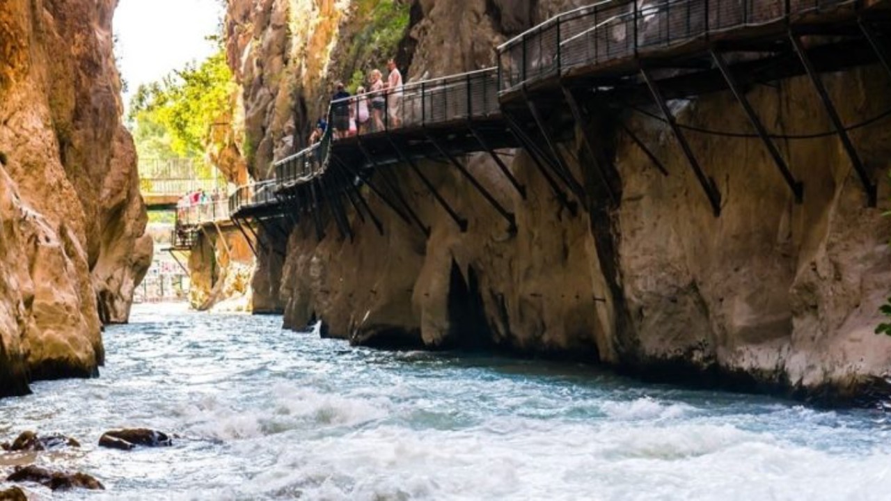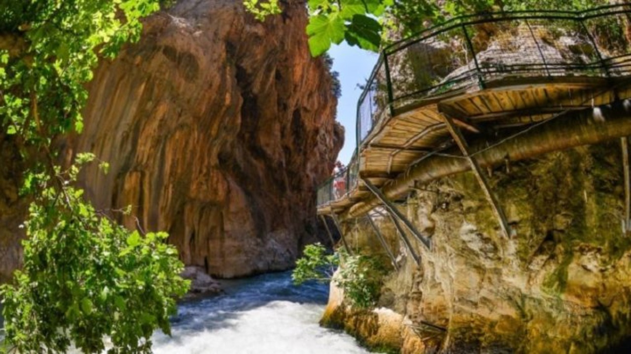 На экскурсии в Саклыкент и Тлос из Олюдениза последним, но самым удивительным местом является ущелье Саклыкент. Это чудо природы находится в 30 километрах от Олюдениза, и оно представляет собой врез в горы хребта Акдалар. Здесь есть множество мест для интересных прогулок. Тропа имеет деревянные дощатые настилы, облегчающие прогулку высоко над рекой.
