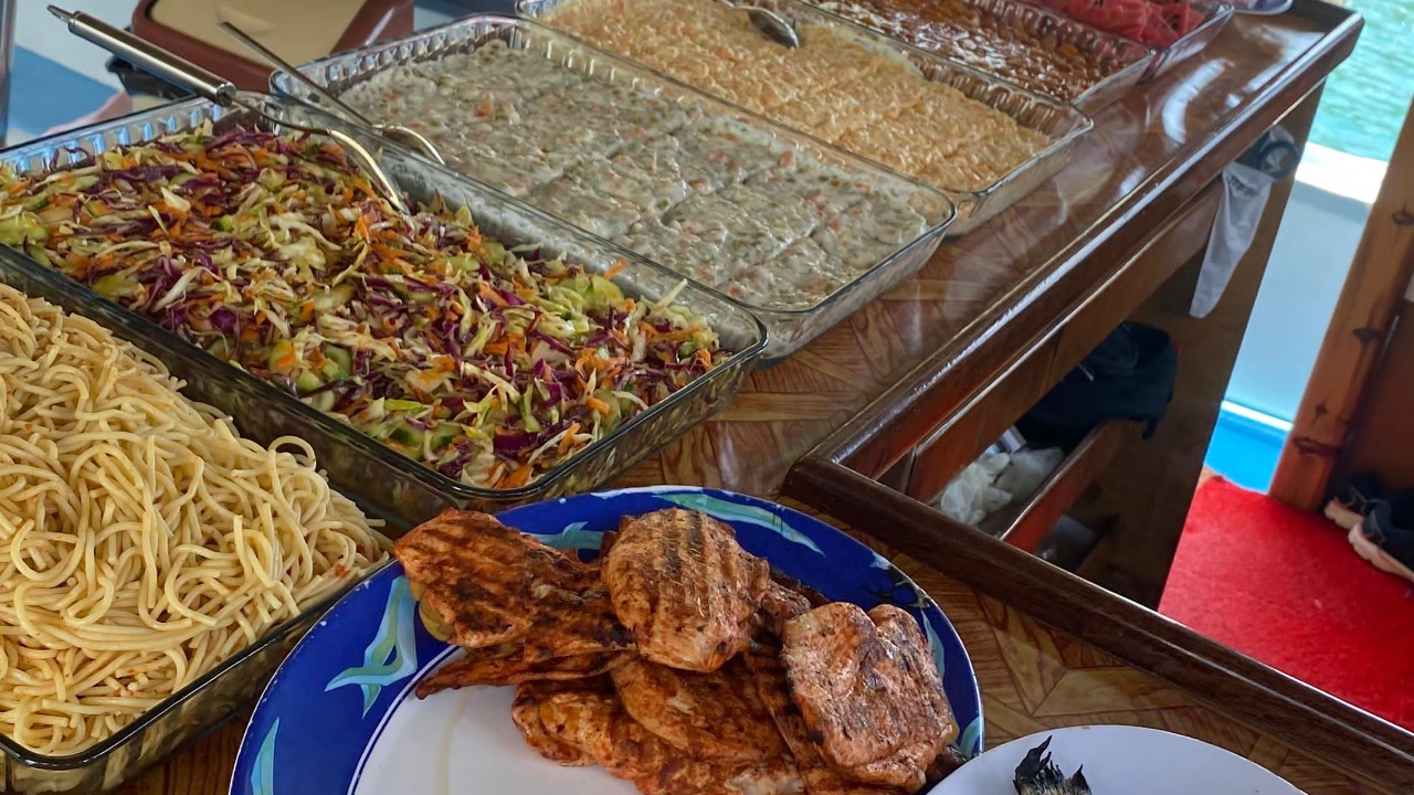 Вас ждёт вкусная еда — гриль, салаты, гарниры и сезонные закуски. Напитки можно приобрести за дополнительную плату.