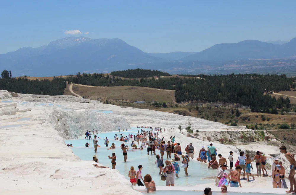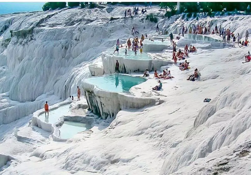 В Памуккале есть термальные бассейны с горячей минеральной водой, которые также доступны для посетителей. Эти бассейны известны своими лечебными свойствами и стали популярным местом для тех, кто ищет релаксацию и оздоровление. Купание в таких водах — отличное завершение путешествия по этому уникальному месту.