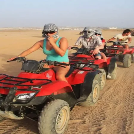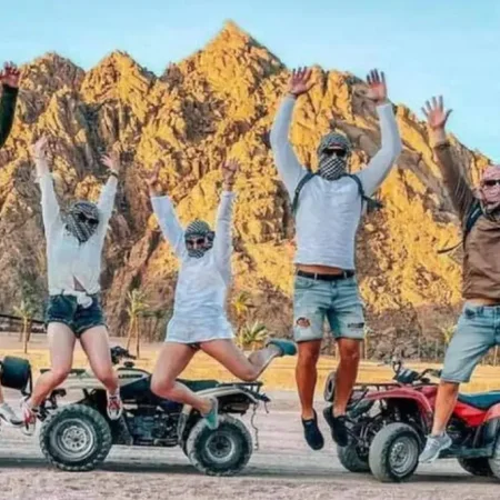 Тур «Квадроциклы в Шарм-Эль-Шейхе» предлагает приключение по захватывающим пейзажам пустыни Шарм-эль-Шейха. От прилива адреналина от езды на квадроциклах до культурного погружения в бедуинскую деревню, этот тур представляет собой сочетание адреналина и просветления. Путешествуя по пустыне на квадроциклах, вы будете очарованы первозданной красотой окрестностей, а посещение деревни бедуинов позволит глубже понять их древний быт.