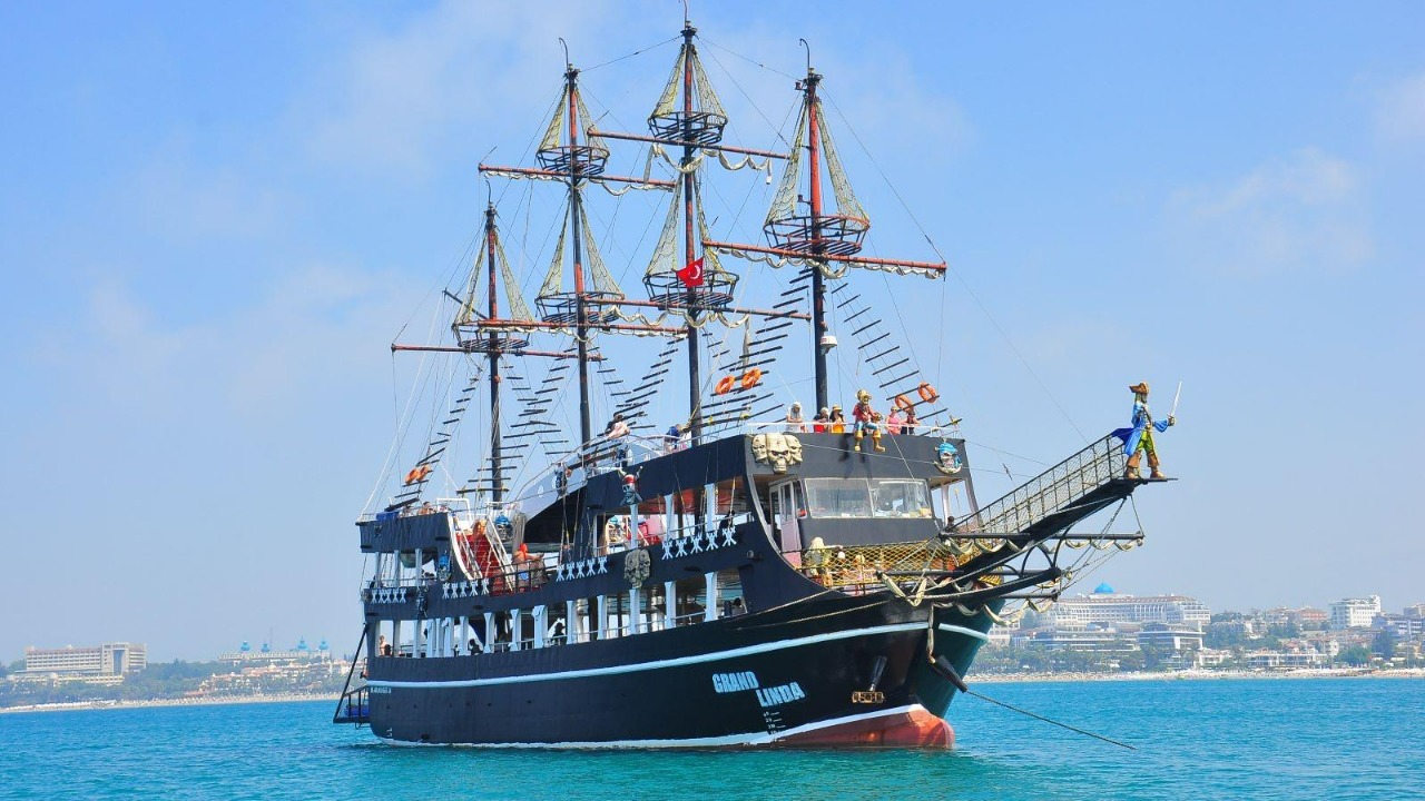 Экскурсия на пиратском корабле Grand Linda — это незабываемая морская прогулка, которая сочетает в себе приключения, расслабление и наслаждение живописными видами. Путешествие начинается с трансфера, предоставляемого для гостей из отелей или других мест проживания. В удобное время они садятся в комфортабельные транспортные средства, которые доставляют их к причалу на реке Манавгат, где уже ждёт пиратский корабль Grand Linda.