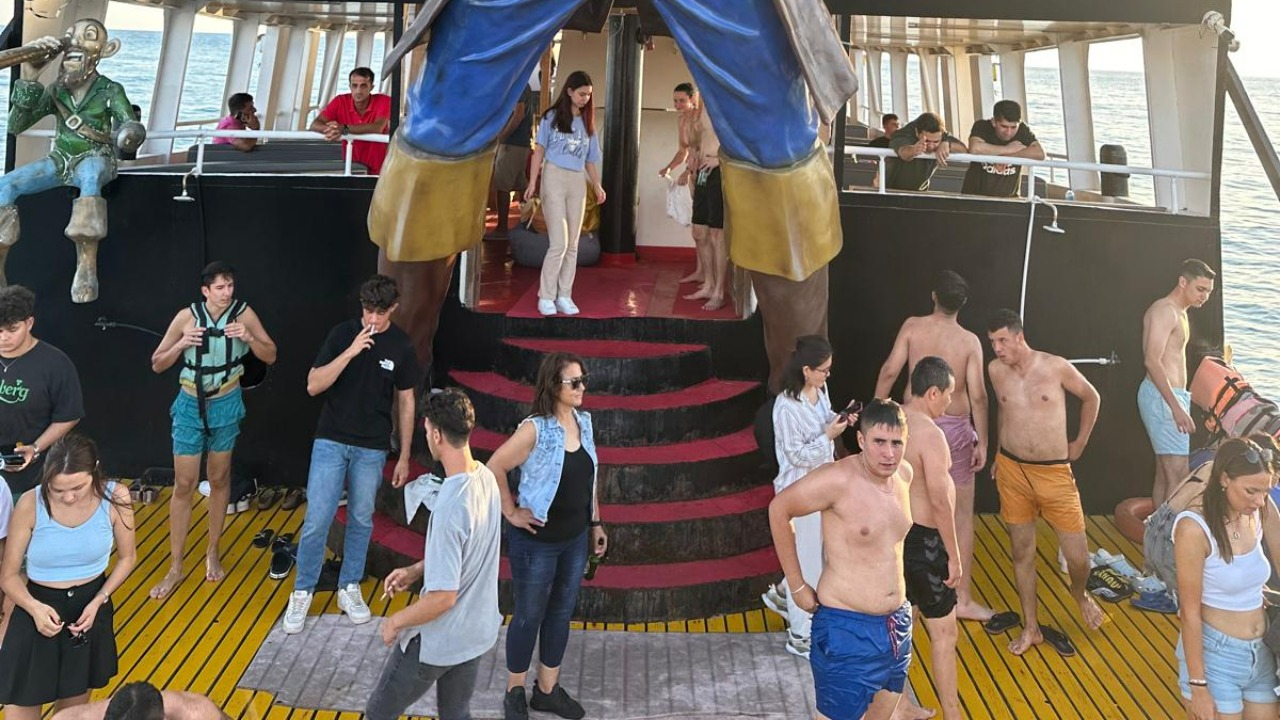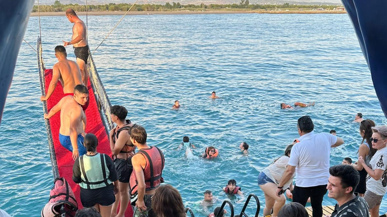 После выхода в открытое море, пиратский корабль Grand Linda направляется в сторону живописного Карабурну, на пути к знаменитому городу Алания. Через примерно один час путешествия корабль становится на якорь в открытом море, предоставляя гостям первую остановку для купания. Средиземное море в этом регионе известно своими кристально чистыми водами, и здесь гости могут насладиться купанием в уединённой бухте.